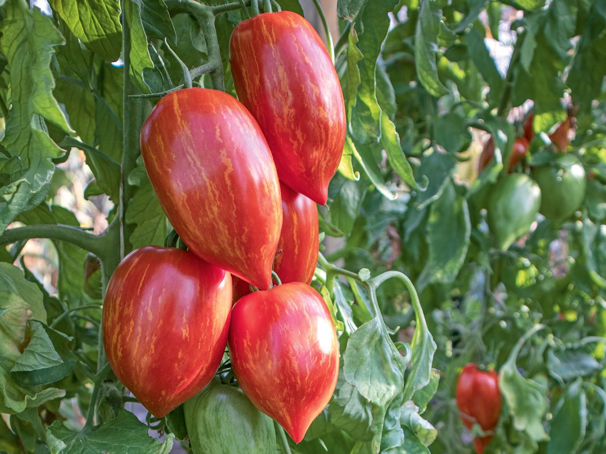 Pflanzentyp: Stabtomate Farbe: dunkelrot gestreift Typ: Flaschentomate Fruchtgewicht: 100 – 200 g Reifezeit: 60 – 70 Tage Pflanzabstand: 75 x 40-60 cm Anbaueignung: geschützter Anbau Geschmack: fleischig, intensives Tomaten Aroma, ideal für die Verarbeitung